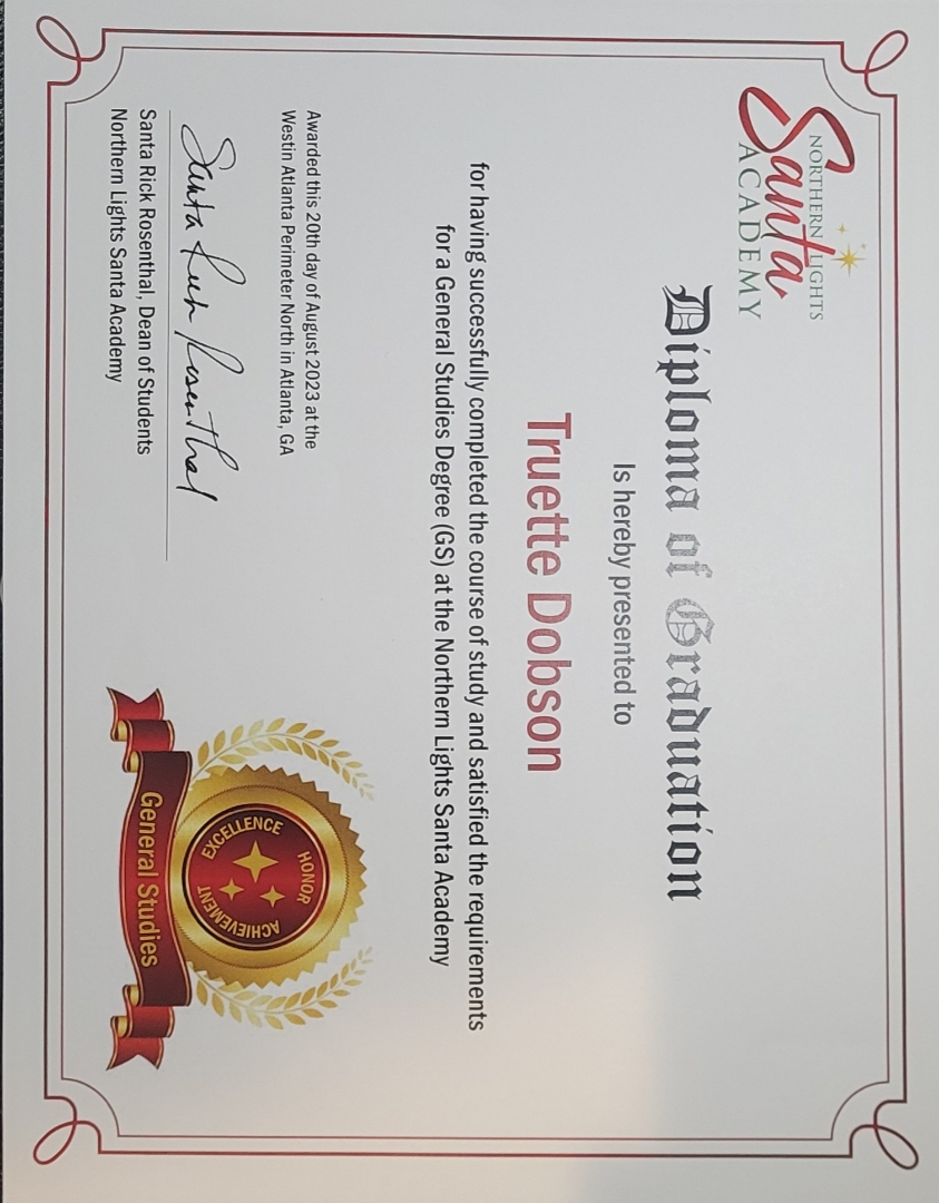If you’re searching for a touch of enchantment for your upcoming event, look no further than Golden Corner Santa and Mrs. Claus! With a wealth of experience and certified professionals, Santa Truette and Mrs. Claus Nancy Dobson are poised to make your holiday celebrations truly unforgettable. Truette, a retired Police Officer, and Nancy, a retired Pharmacist, have graduated from the prestigious Northern Lights Professional Santa School in Atlanta, GA, the C.W. Howard Santa School in Michigan (the oldest Santa school globally), and, in 2024, the International Santa Celebration in Memphis, TN, and School4Santas in Orlando, FL. Truette is also a proud member of the esteemed International Brotherhood of Real Bearded Santas.